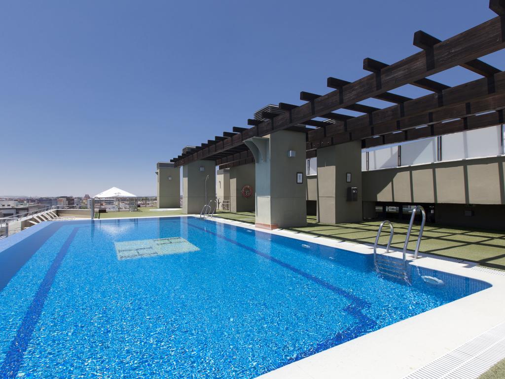 Su terraza, situada en la 7ª planta, desde donde se aprecian los monumentos de referencia de la ciudad, la sierra y la campiña cordobesa. En ella podrá disfrutar de la piscina exterior panorámica, del jacuzzi al aire libre y un amplio solarium con tumbonas y sombrillas, además del fitness center con sauna.